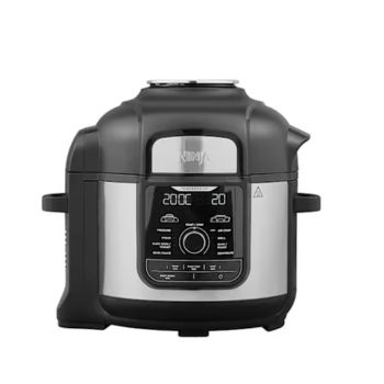 - Met Multi-Cooker met crispdeksel, drukdeksel, kookpan van 7,5 liter, rek met 2 niveaus, kook- en crispmand, receptenboekje