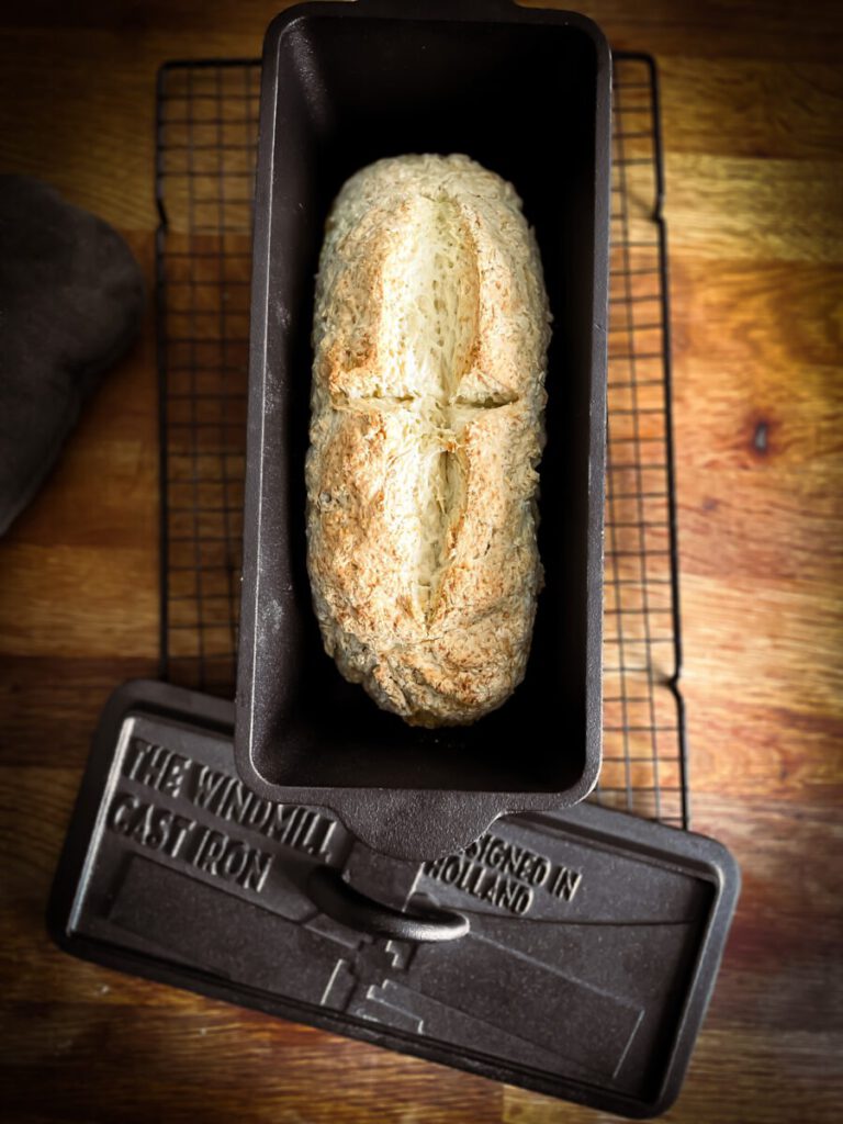 Ik heb dit brood trouwens gebakken in de windmill loaf ’n bread dutch oven. Zo makkelijk om hier vers brood in te bakken en als Hungry Dutchman ook zo’n tof merk om aan te verbinden. Ook benieuwd trouwens naar deze dutch oven? Bekijk ‘m hier eens op de website van the Windmill cast iron zelf.