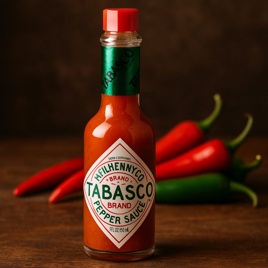 Tabasco komt uit Avery Island in Louisiana, en wordt al sinds 1868 gemaakt door de McIlhenny Company. Het is een van de oudste en bekendste hotsauzen ter wereld. De basis is simpel: rode pepers, zout en azijn. Wat het bijzonder maakt, is dat de pepers eerst jarenlang rijpen op eikenhouten vaten. Pas daarna wordt de saus gemengd met azijn en nog eens gefilterd en gerijpt.